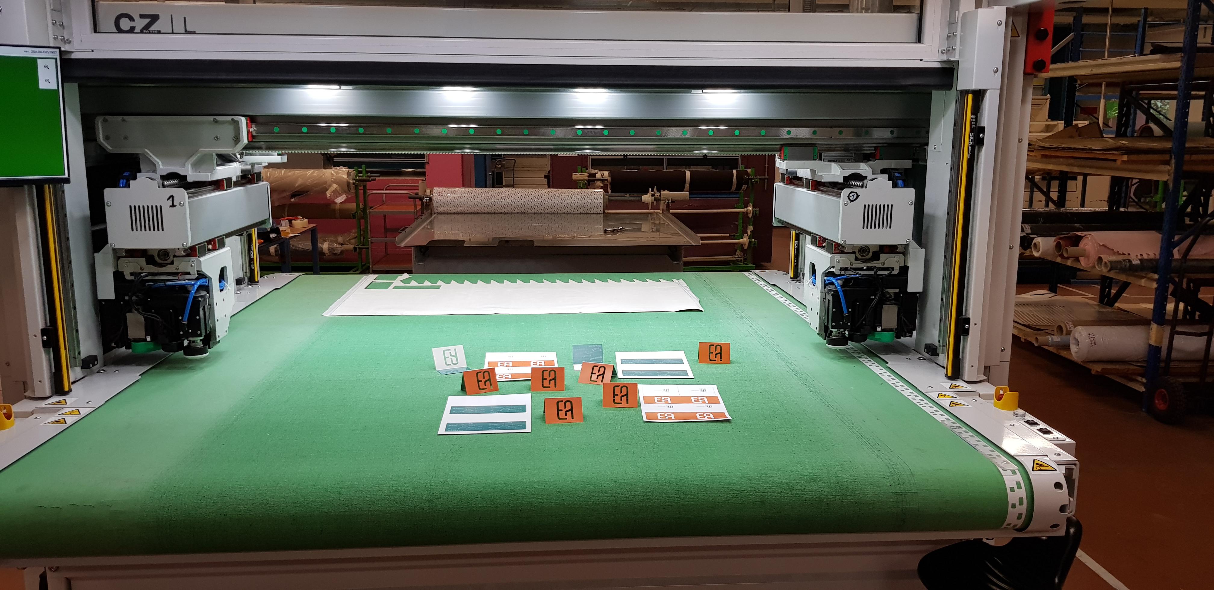 Découpe d’une nouvelle matière pour la conception de rideaux à lamelles pour les ateliers Jouffre de Villeurbanne.